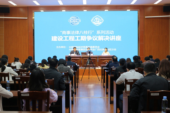 2021年3月25日,贸仲与广西贸促会联合在广西南宁举办了“建设工程工期争议解决”讲座,贸仲仲裁员邱闯先生结合工程案例就建设工程合同中核心工期条款的理解和起草等企业关注的问题进行了授课,贸仲事业发展处张霞女士向与会人员介绍了仲裁的优势及签署涉外合同应注意的问题。广西贸促会法律聂新宇部长主持了讲座。