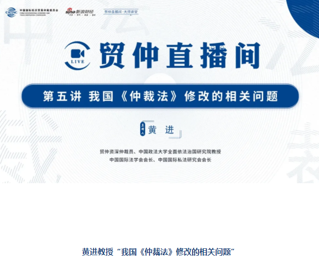 贸仲直播间-大师讲堂系列课程第五讲将于2021年6月10日(星期四)下午2时,邀请贸仲资深仲裁员、中国政法大学全面依法治国研究院教授,中国国际法学会会长,中国国际私法研究会会长黄进教授,讲解“我国仲裁法修改的相关问题”。