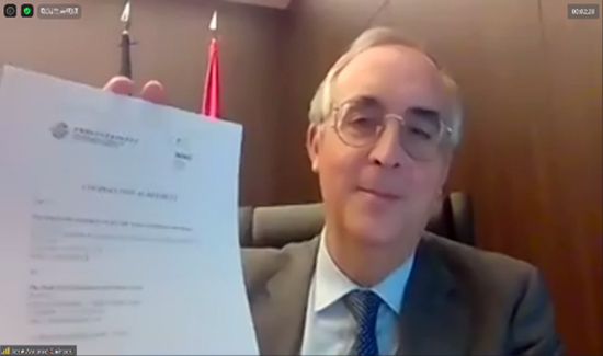 2021年7月8日,中国国际经济贸易仲裁委员会(CIETAC)与西班牙马德里国际仲裁中心(MIAC)通过线上方式举行了《合作协议》签署仪式。贸仲副主任兼秘书长王承杰先生与马德里国际仲裁中心主席José Antonio Caínzos先生分别代表双方在《合作协议》上签字。马德里国际仲裁中心秘书长及马德里律师协会国际关系负责人一同出席了本次仪式。