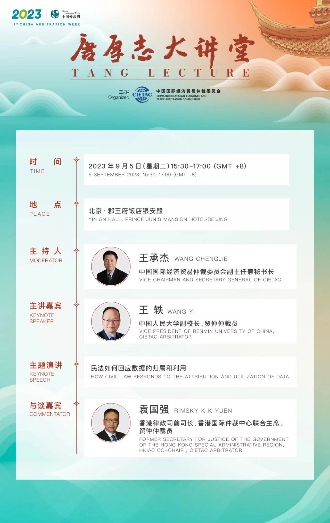 中国国际经济贸易仲裁委员会(CIETAC)主办的第七届“唐厚志大讲堂(TANG Lecture)”将于2023年9月5日下午在北京举行。