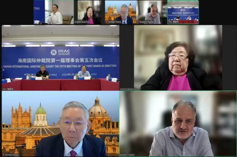 5月10日,海南国际仲裁院第一届理事会第五次会议在海口召开。海南国际仲裁院理事长王雪林主持会议,张月姣、黄进、刘敬东、尹田、符琼芬、王琦、约翰·阿齐尔·埃劳(Johan Achiel Erauw)(比利时)、黄锡义(Michael Hwang)(新加坡)、本杰明•休斯(Benjamin Hughes)(美国)、范凯杰(中国香港)等理事以“线上+线下”方式出席会议。