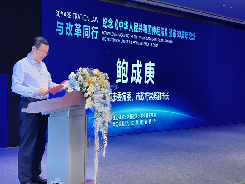 今天“与改革同行:纪念仲裁法颁布三十周年论坛”的举办,有利于助力优化仲裁法律体系,提高仲裁服务水平,进一步发挥仲裁在“建设法治中国、推进国家治理体系和治理能力现代化”中的重要作用,也必将有力推动九江仲裁工作再上新台阶。我们将以此次论坛活动为契机,不断提高仲裁案件质量和法律服务效能,更好满足人民群众对新时代法治建设的新需求新期待。
