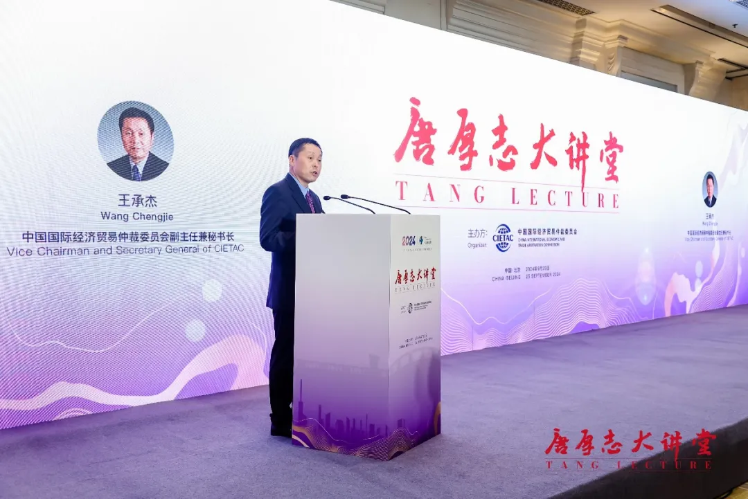 王承杰秘书长在开场致辞中表示,唐厚志大讲堂是为了纪念我国仲裁事业的重要奠基人和开拓者唐厚志先生而设立。近年来,党和国家高度重视并积极推动仲裁事业发展。今年7月党的二十届三中全会通过的《中共中央关于进一步全面深化改革 推进中国式现代化的决定》,更是高度重视、四次提及仲裁,并对健全国际商事仲裁制度、培育国际一流仲裁机构作出专门部署、提出明确要求。唐老多年来倡导、推动我国仲裁事业发展的不懈努力和重大贡献在新时代久久回响。