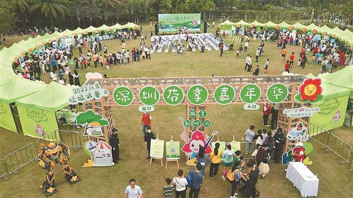 11月13日,为期两天的“换享新时尚”垃圾分类减量日系列活动之“芬享嘉年华”活动在莲花山公园椰风林广场圆满落幕。现场31家与垃圾分类有关的公益机构、分流分类企业和单位共同参与,与市民互动,科普垃圾分类知识,展示垃圾分类处理全流程。