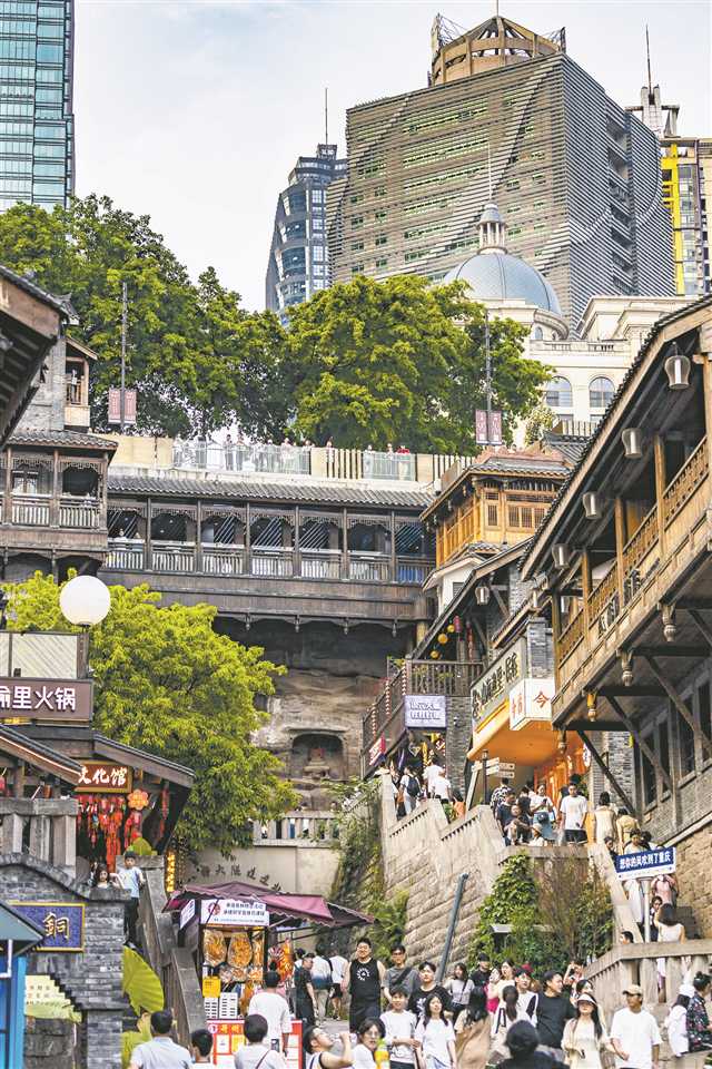 十八梯运营管理方负责人表示,在规划引领下,十八梯以“老重庆”文化为脉络,以“真山城”建筑为基础,以“新生活”业态为引擎,着重展现了巴渝传统风貌,并挖掘活化传统文化,实现了文商旅城融合发展。