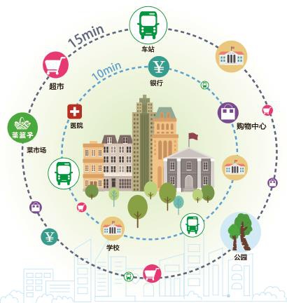想象一下,一天的生活这样规划是否很幸福——早上出门,在家附近的早餐店吃顿热乎乎的馄饨,再步行15分钟去上学或上班。居住的小区周围,菜市场、健身房、口袋公园、超市、医院等生活配套设施一应俱全。