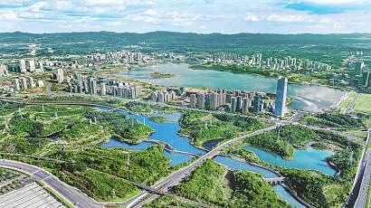 四川天府新区党工委相关负责人表示:“坚持绿色发展,彰显生态价值,是我们始终不变的城市初心。”因此,四川天府新区秉持山水林田湖生命共同体理念,加强生态资源综合保护和科学利用,大力优化生态系统、公园体系、风貌形态,努力促进生态单元、产业空间、消费场景有机融合,让城市在山水间自然生长、市民在公园里幸福生活。