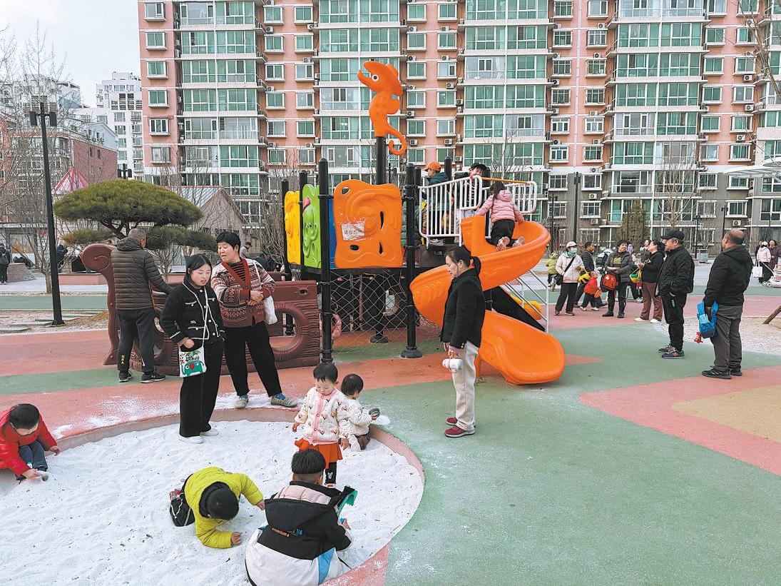 地处小区之间的“方寸之地”,馨园公园不大,分区却不少。除了儿童游乐区,还有适合成年人健身、下棋、写地书的场地。“去年10月开园即火爆,周末同时在园人数经常突破500人。”通州区城管委工作人员王嘉杰说,改造前,这里是一个建成20多年的小广场,水系景观很破旧,家长来遛娃,都不敢撒手,生怕磕了碰了。