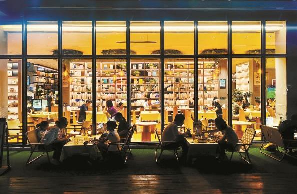 在和平公园,有不少市民吃完晚饭后来到这里,或乘凉小憩,或健身娱乐,或在和平书院里点一杯咖啡、读一本好书,尽享夜公园的“清凉一夏”。图为24小时开放的和平书院成为市民夜间消夏好去处。(杨建正 摄影报道)