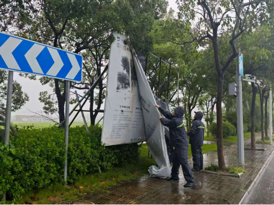 风雨未歇,巡查不止。各地执法人员持续开展高频次、全覆盖的动态巡查,确保各类突发险情和隐患能够第一时间发现、上报、处置。在巡查中,他们重点劝返在河边、公园内冒险垂钓的人员;在排查沿街商铺广告时,反复叮嘱商户关闭所有户外广告、店招店牌、景观灯光电源,并采取断电措施,极力消除“风灾源”。