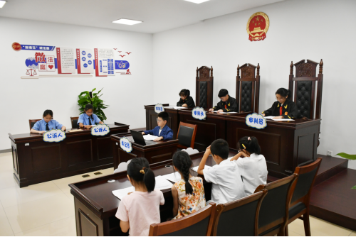 “面对校园霸凌我们不仅要勇敢地说‘不’,更要第一时间保护好自己!”7月23日下午,一场聚焦校园霸凌的“模拟庭审”在浙江省宁波市镇海区招宝山街道安商中心内激烈展开,14名镇海区小学生与14名来自宁波大学法学院社会实践队伍的志愿者在互动中共同解锁法治新体验。