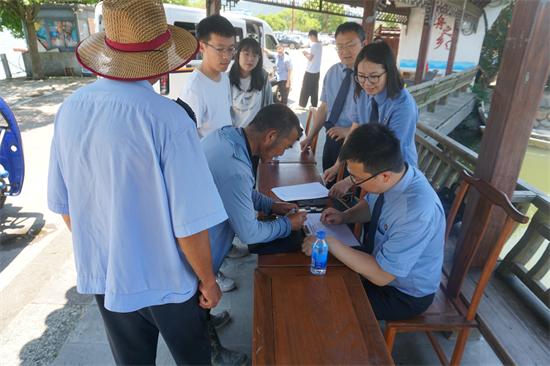 图为陶公村村民登记信息领取福寿螺卵收购款