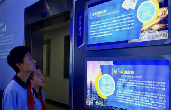 在食品安全科普宣教中心,宁波市质检院专家结合日常生活场景,向同学们讲解食品标签、食品贮存、食源性疾病预防等方面知识。