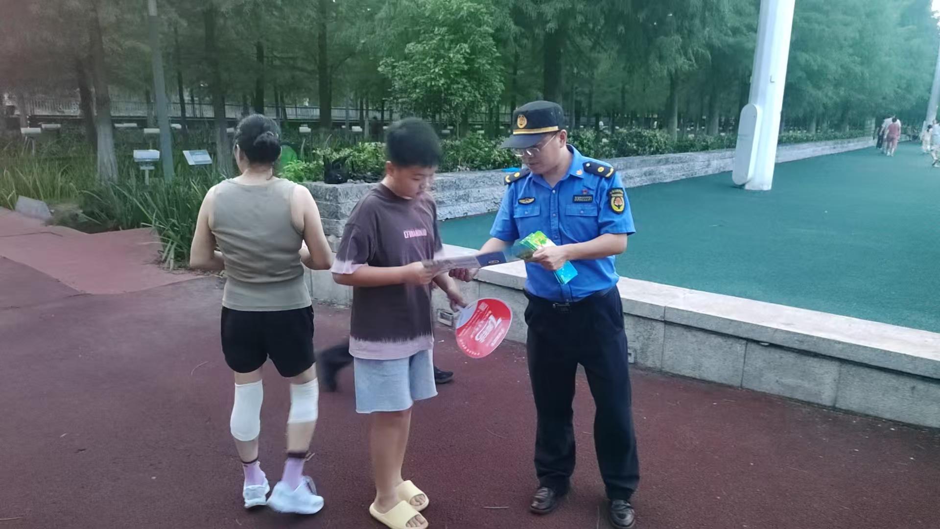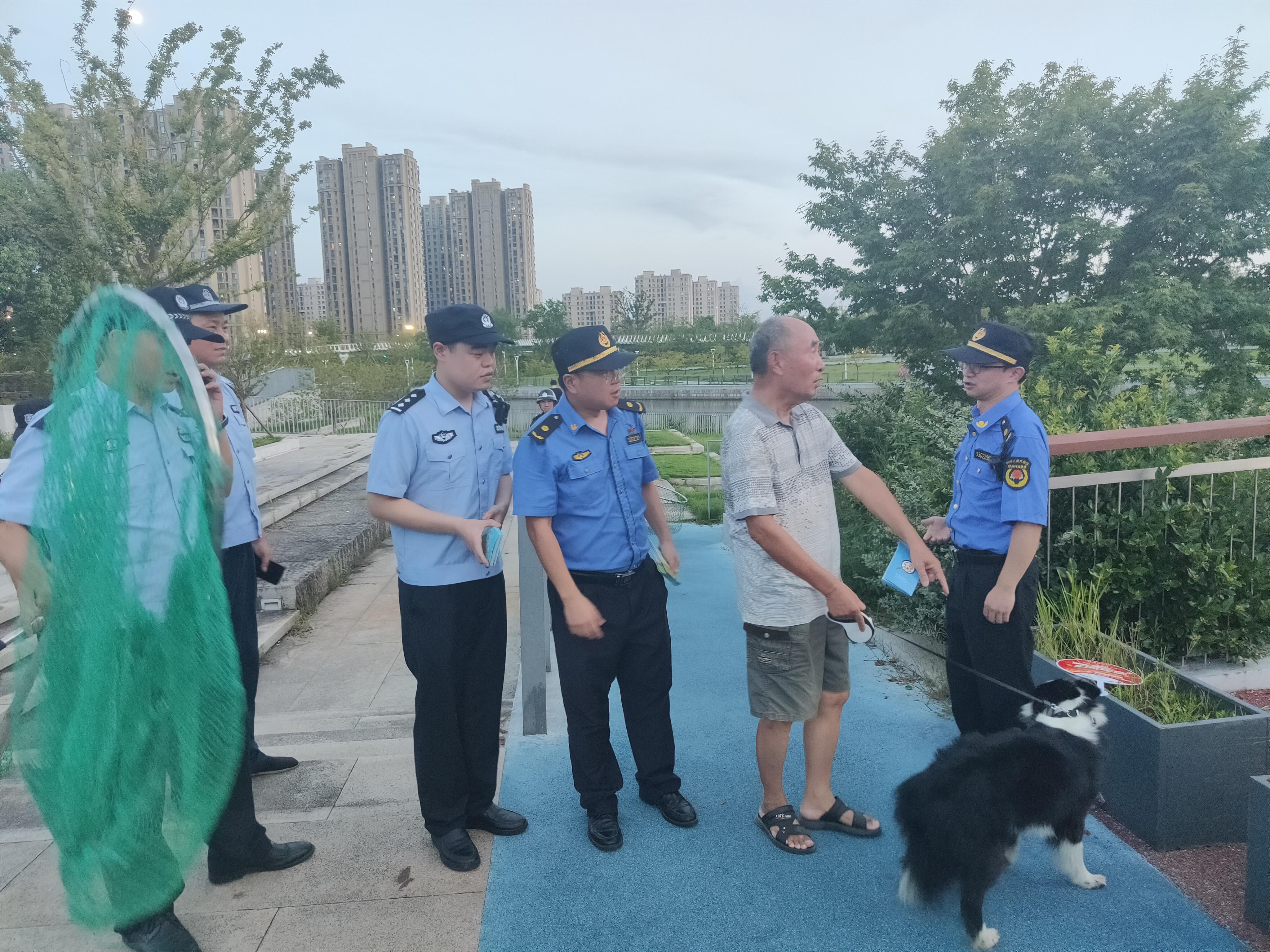 执法人员在西大河体育公园、箭港湖公园等地开展路面巡查