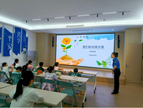 普法活动以孩子们喜闻乐见的形式展开,现场播放了动画短片《我们的垃圾分类》,以浅显易懂、活泼有趣的方式,向孩子们普及垃圾分类相关的基础知识。随后,执法人员通过游戏互动、知识抢答等方式,为孩子们生动讲解日常生活中区分可回收物、有害垃圾、厨余垃圾与其他垃圾的科学方法。