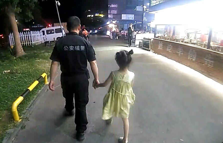 “小宝贝你多大啦?”“是在楼上吃还是在楼下吃的啊?”一路上,张龙牵着小女孩的手,边走边聊,耐心的话语和掌心的温度,让小女孩紧绷的小脸逐渐放松下来。同时,张龙在两人的对话中迅速提取有效信息。长长的街巷,大手牵小手的两个身影在路灯下缓缓前行。