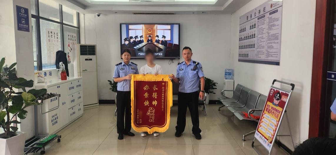 “充电宝虽小,但群众的事就是天大的事。”张展宁拿着锦旗有点不好意思,“破案快是职责,帅不帅嘛……群众满意就是对我们最大的认可!”店老板在一旁笑着说:“张警官认真负责的样子,就是最帅的!”