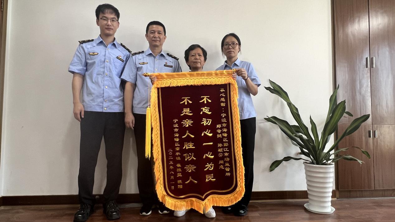 近日,消费者崔女士将一面写着“不忘初心一心为民 不是亲人胜似亲人”的锦旗送到浙江省宁波市海曙区鄞江市场监管所,字里行间满是对工作人员高效服务的肯定与感激,为炎炎夏日里的政务服务窗口带来了一阵沁人心脾的清风。