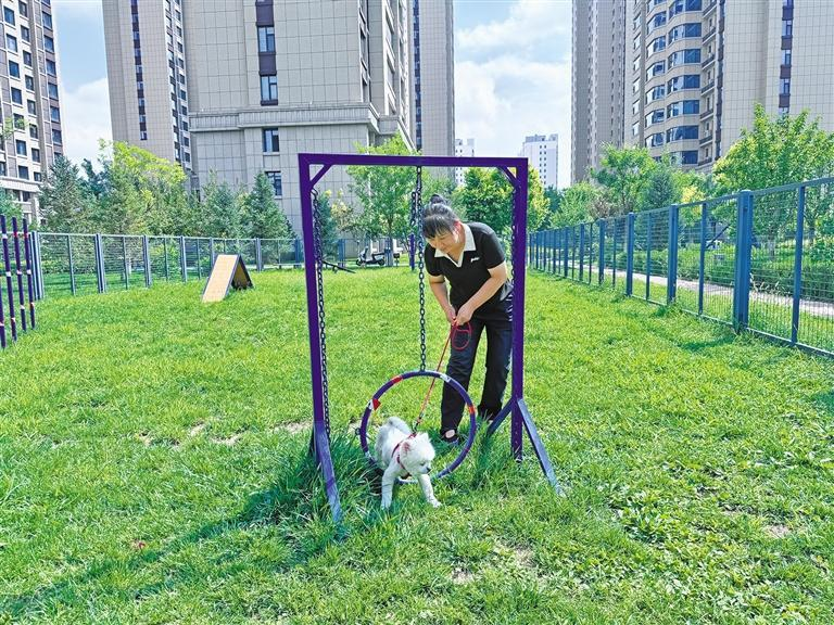 在占地近200平方米,设施齐全、环境整洁的宠物乐园,跨栏、钻圈、平衡木、滑梯、跷跷板等游乐设施一应俱全,还有专门的宠物饮水点、便池,给宠物提供了一个干净舒适的玩耍环境,充分满足了小区120多户养犬业主的需求。