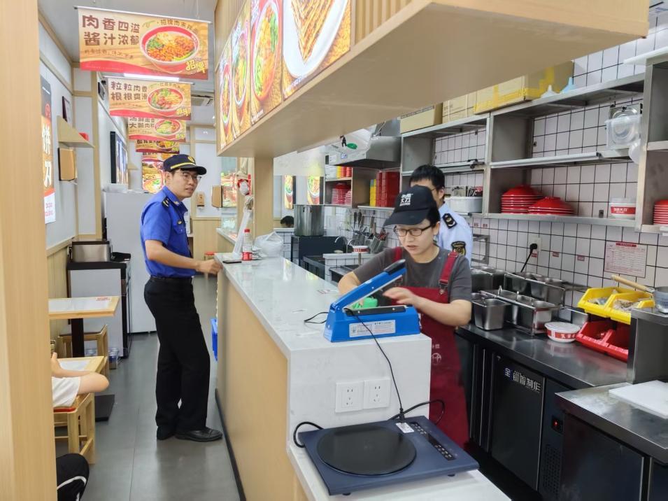 食安“加码”,守护舌尖上的安心。“餐饮店燃气报警器是否正常运行?油烟净化器清洗的台账是否齐全?”聚焦开学季师生就餐需求,执法人员带着“一店通查”清单,对高校周边20余家餐饮店开展“全覆盖”检查。检查以燃气安全为核心,严格核对钢瓶实名制信息,排查灶具、减压阀隐患,确保燃气报警器处于正常使用状态;同步严查跨门经营、垃圾分类混投等问题,督促商户落实“门前三包”责任,对两家存在隐患的店铺现场下达整改通知书,要求限期整改。