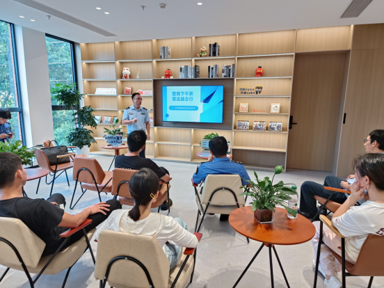 围桌而坐,没有发言席,不念稿子,只谈问题。8月21日下午,在浙江省宁波市鄞州区首南街道高教园区云创浙理青年国度商业街区内,鄞州区综合执法局首南中队联合市场监管部门、应急消防部门与15家商铺围坐一堂,共同举办“营商下午茶·普法益企行”活动,通过零距离对话,为商家“面对面”答疑解惑。
