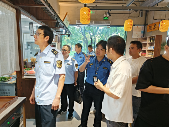 沙龙活动结束后,三部门执法人员与商家一同来到两家新开业餐饮店铺,现场就餐厨垃圾处置、消防设施设置、后厨人员操作规范等细节问题进行指导演示、明确标准要求。