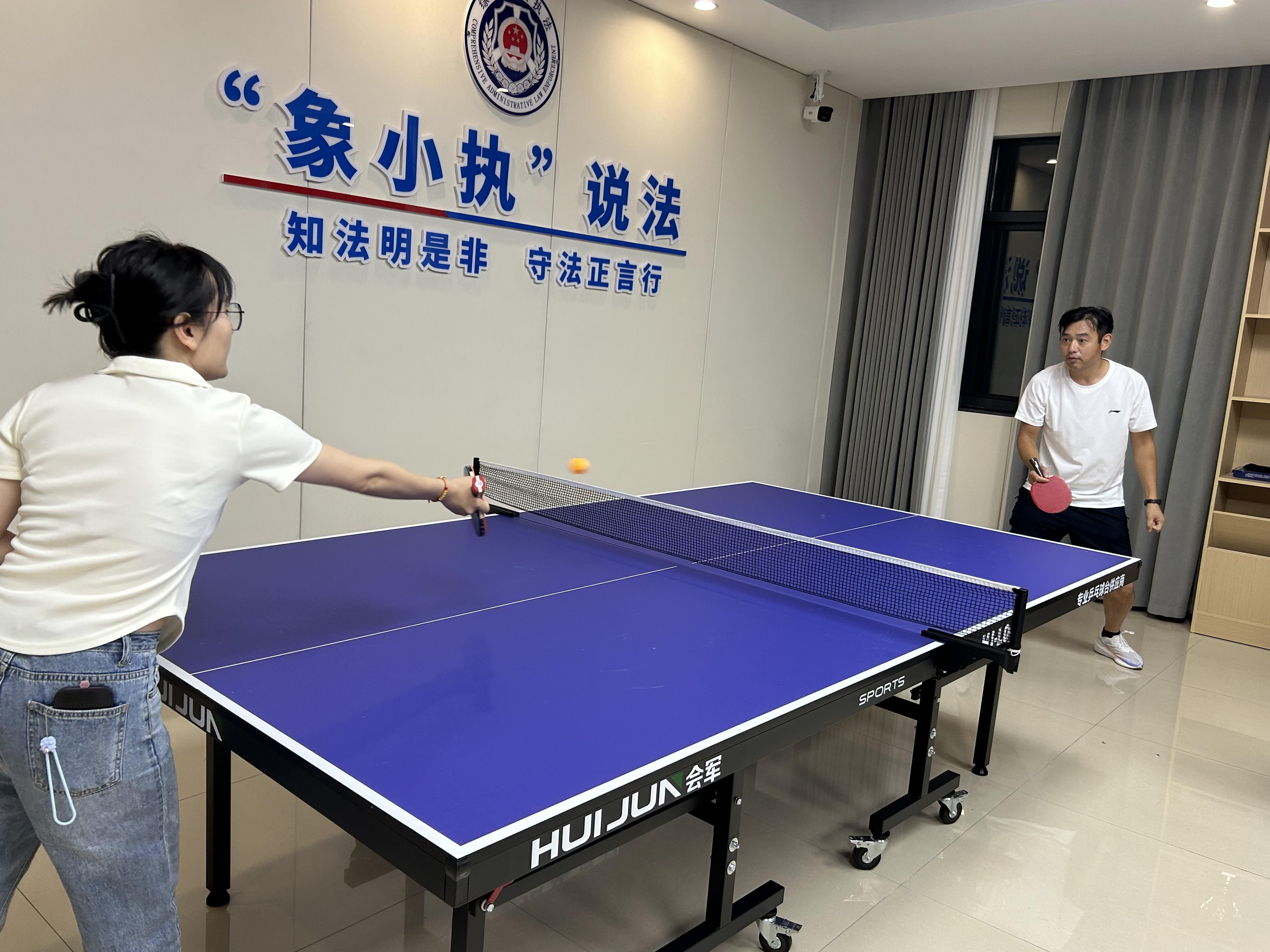 傍晚6时许,浙江省宁波市象山县综合行政执法局的“象小执职工之家”渐渐热闹起来。乒乓球在球台上划出清脆的弧线,一个身影箭步上前完成扣杀,引得周围同事阵阵喝彩。“再来一局!”伴随着运动鞋与地胶的摩擦声,新一轮对战在欢声笑语中展开——这一幕充满活力的日常图景,正随着“职工之家”的建成而逐渐融入干部职工的下班生活。