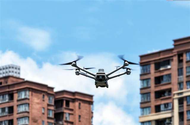 7月23日,北碚区城区,一架智能无人机在空中巡逻助力智慧城市管理。特约摄影 秦廷富/视觉重庆