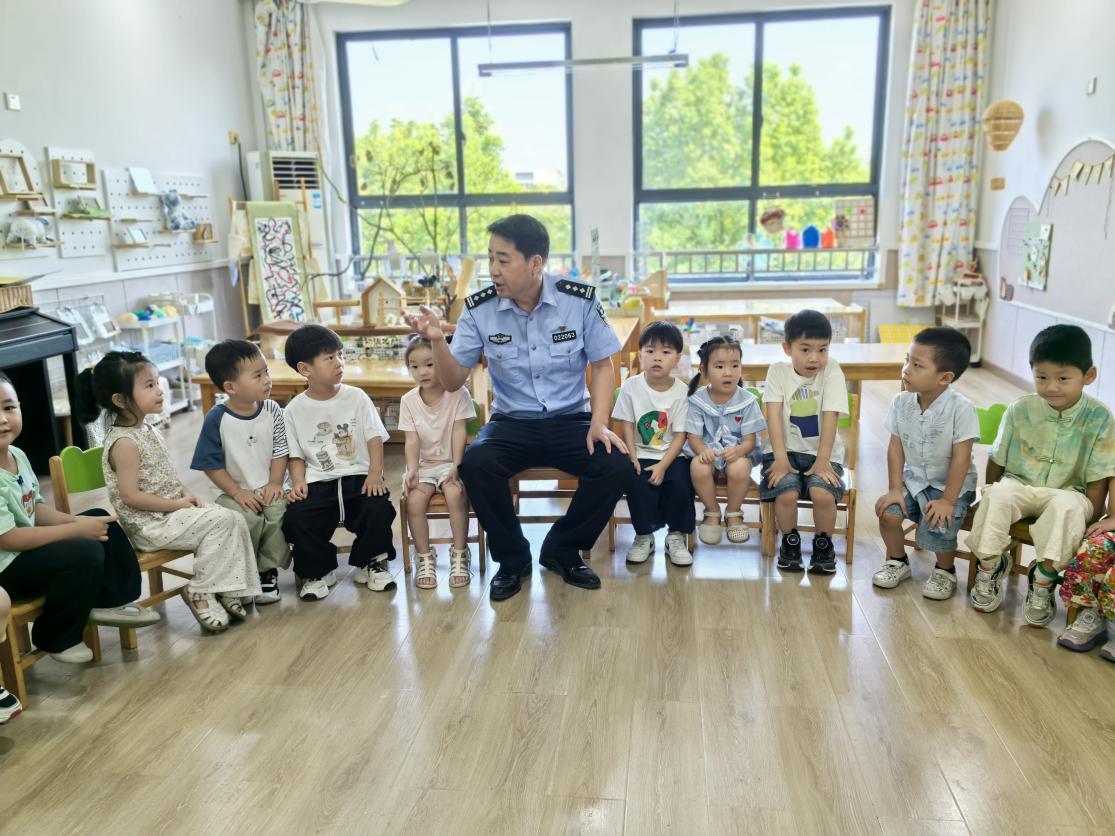 “小朋友们,过马路时要先看左边还是右边呀?”“红灯亮了要怎么做呢?”9月4日上午,浙江省宁波市江北区悦和幼儿园的活动室里热闹非凡,江北区甬江派出所法治副校长姜警官带着一堂生动的开学安全课,和孩子们开启了一场“安全小课堂”,用趣味互动为孩子们筑牢开学安全防线。