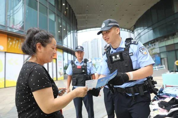 图为民警向辖区居民分发安防提示单