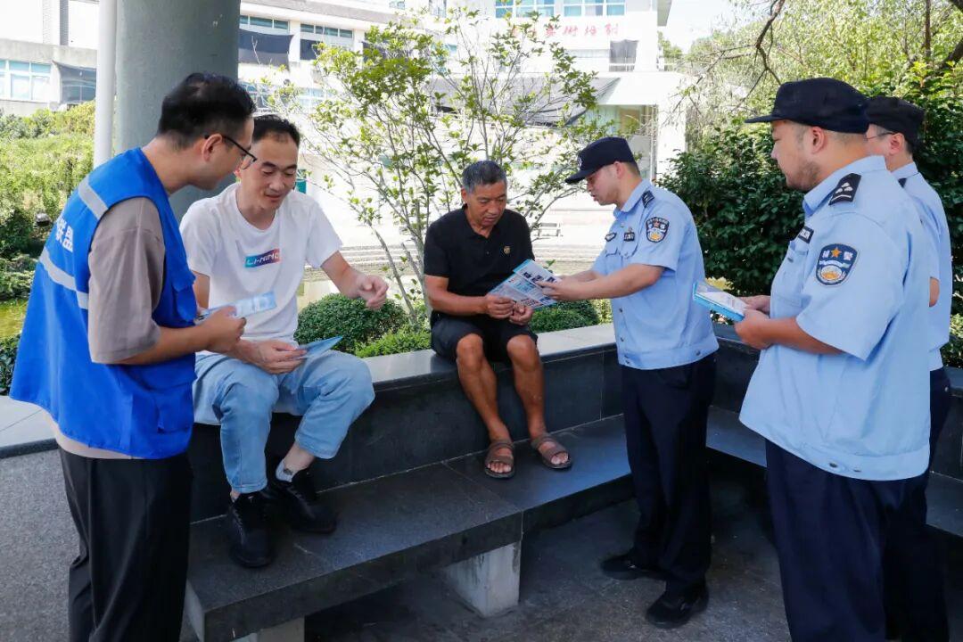 图为民辅警联动社区网格员进行反诈宣传