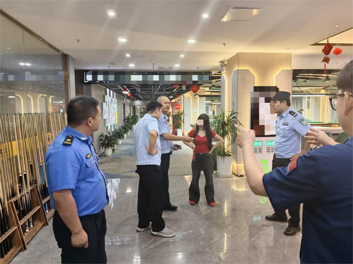 近日,浙江省宁波市奉化区岳林街道综合行政执法队牵头,由综合执法、市场监管、人社、文旅、公安等多部门组成专项检查组,对金钟广场、岳林广场、万达广场周边台球厅,开展以消防安全、食品安全、噪声污染及违规使用童工为重点的突击检查,以部门协同的“组合拳”规范经营秩序,切实筑牢辖区安全防线。