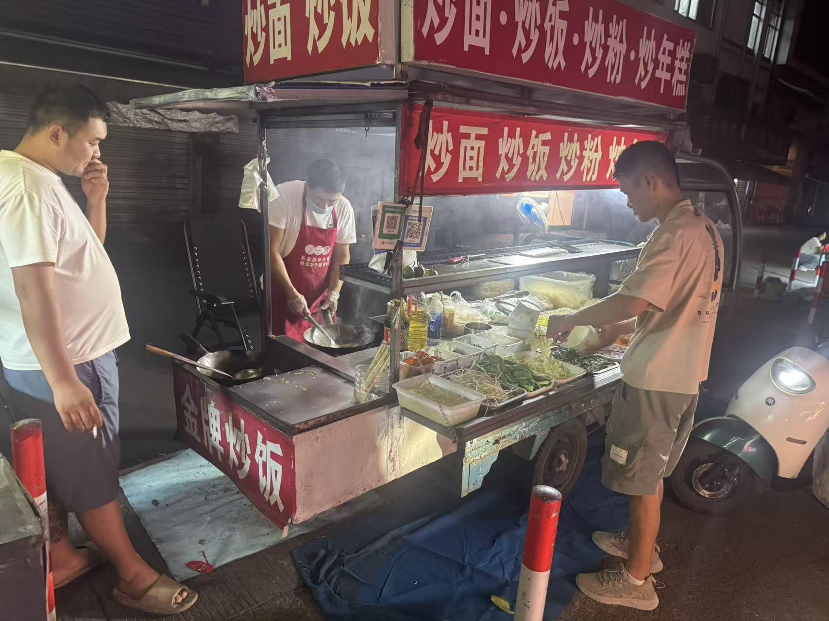 地块的夜间闲置、城区内居民的夜间零星用餐需求、流动摊贩生计难问题,“堵点”与“出口”一拍即合,加上之前临港产业园的治理经验,8月初,柴桥中队依托“仑小城”普法平台,联合公安、市监、街道职能科室等部门,对流动设摊摊主开展普法座谈。针对部分摊主的合理设摊需求,中队跳出“一刀切”治理思维,打好“时间差”,创新采用“空间置换”模式盘活约500平方米的场地资源。