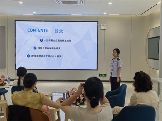 在税务赋能环节,镇海区税务局蛟川税务所的税务师郑佳瑶聚焦小型微利企业税收优惠、残疾人就业保障金等热点,细致讲解税务优惠政策,助力企业在依法依规经营的基础上“轻装”前行。