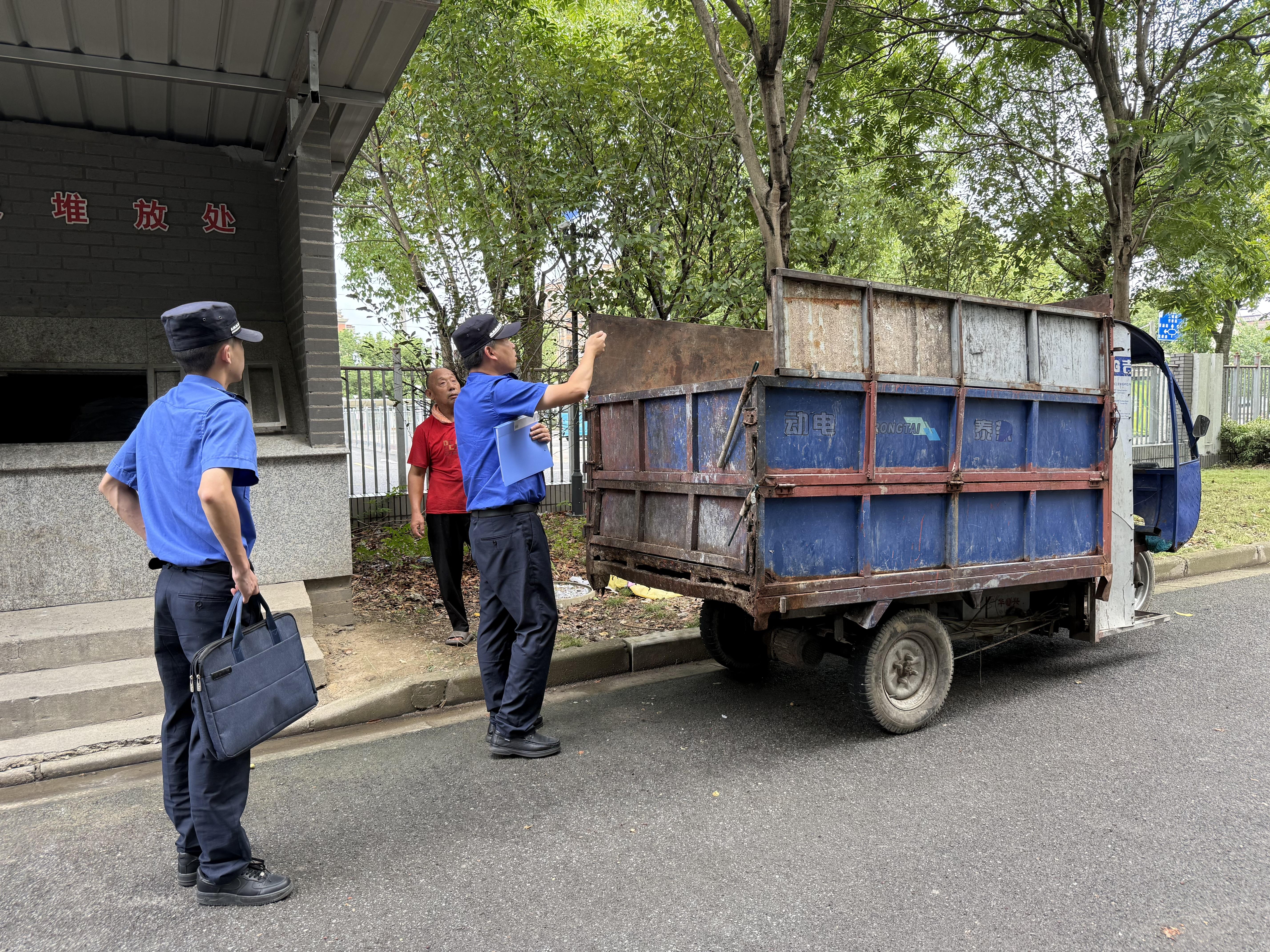 案例三:9月10日,执法人员在朗霞街道某中学巡查时,发现一辆蓝色电动三轮车正在违规收运餐厨垃圾,装载量约320升,所收垃圾均来源于该校食堂。经查,当事人俞某曾于5月27日因未经许可从事餐厨垃圾收运、处置被责令限期改正,但其仍继续违规操作。目前,该案件正在进一步依法办理中。