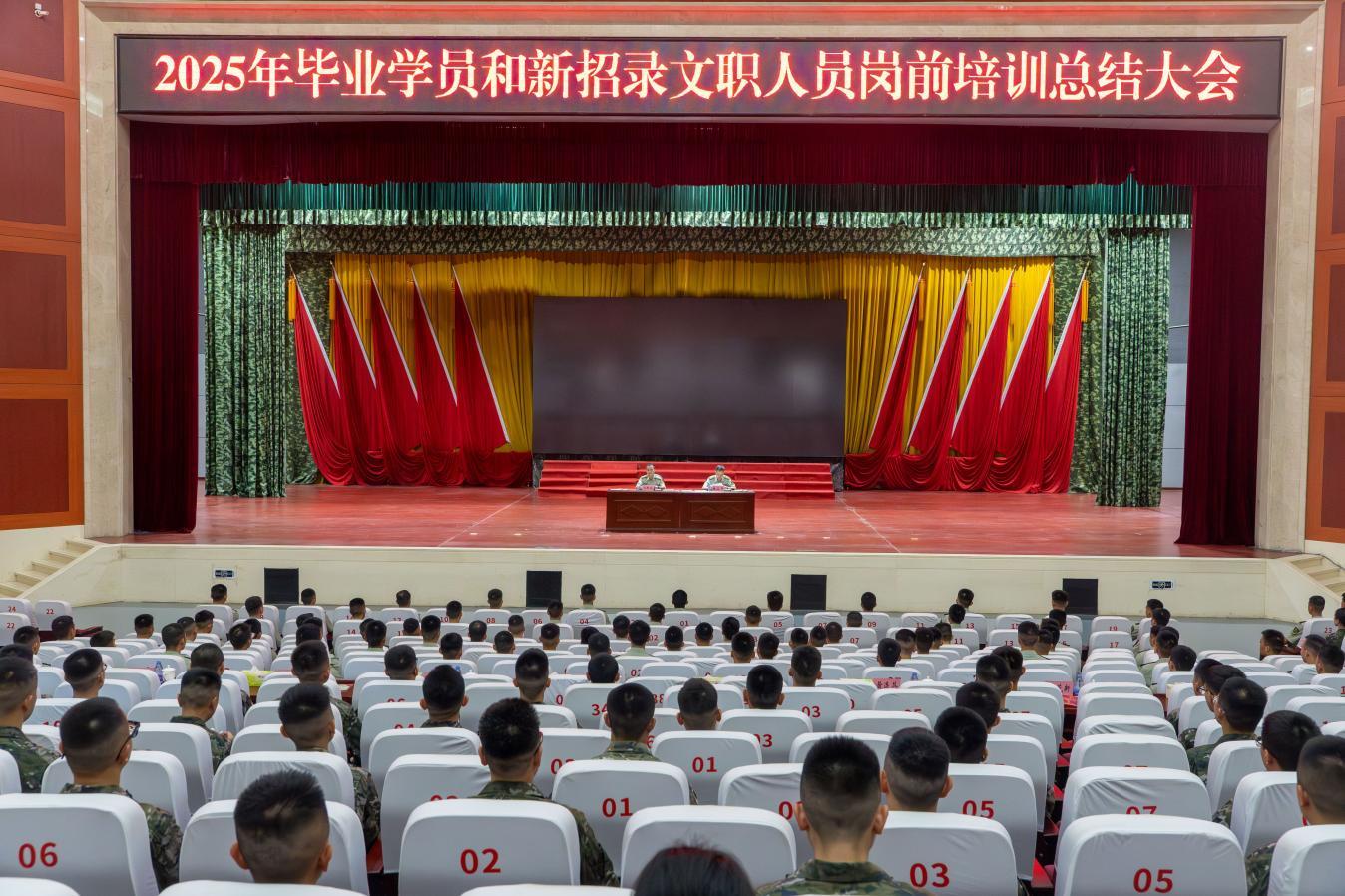 图为武警福建总队2025年毕业学员与新招录文职人员岗前培训总结大会