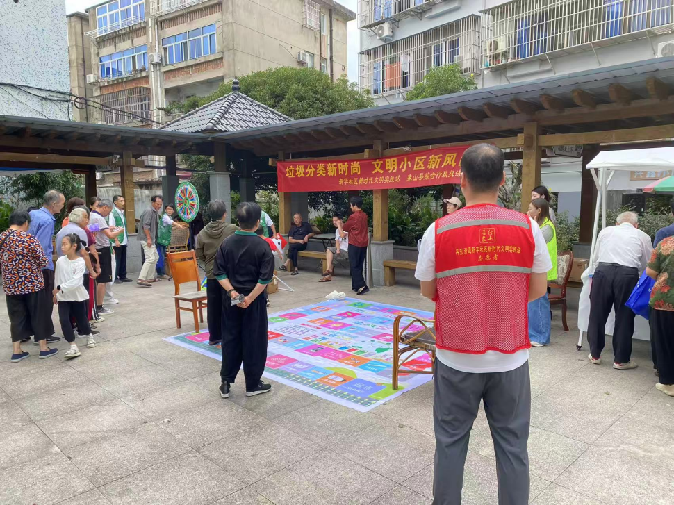 活动现场分为宣传咨询与游戏互动两大区域,内容丰富、形式新颖。在宣传咨询区,执法人员就居民关心的违法搭建、占道经营、垃圾分类等问题进行了耐心解答,同步开展反诈防骗宣传,有力夯实了社区平安防线。在游戏互动区,“垃圾分类大转盘”“沙包精准投掷”等寓教于乐的项目吸引了大量居民参与,让文明习惯在欢声笑语中悄然养成。