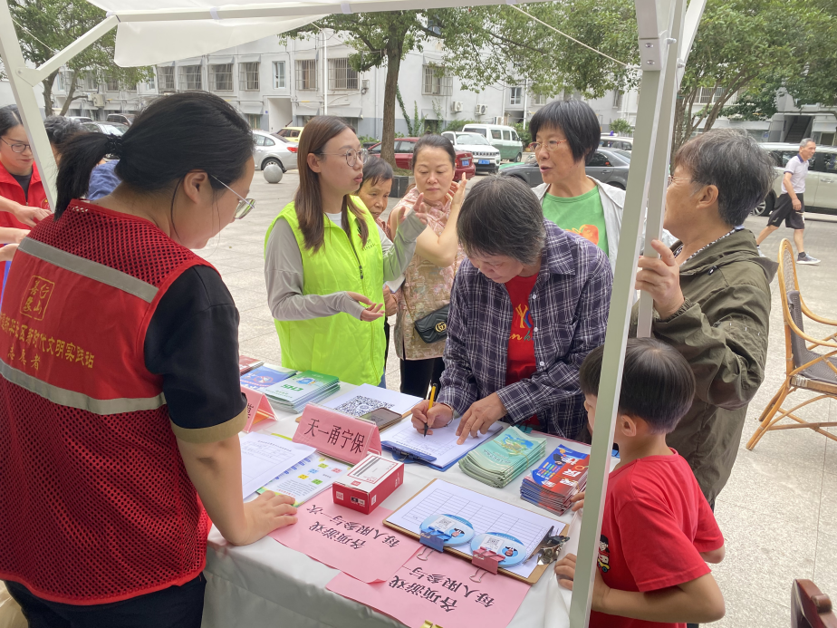 活动当天,现场气氛热烈,秩序井然。象山县综合行政执法局的党员志愿者充分发挥专业特长,在现场设立综合执法普法摊位,聚焦文明养犬、市容环境、垃圾分类法规等与居民生活息息相关的执法事项,提供权威的政策解读与咨询服务;新华社区志愿者作为“邻里纽带”,积极引导人流、分发资料,用通俗易懂的语言拉近普法距离;绿丝带志愿者协会则凭借其在环保领域的专业优势,通过趣味游戏生动宣讲垃圾分类技巧,为活动注入绿色活力。
