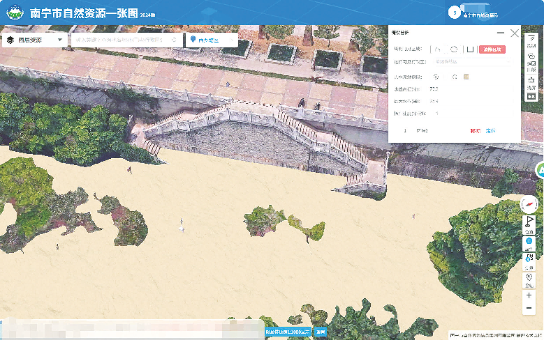 水域模拟、清淤计算只是南宁市地理空间智能体功能的一部分。经过多年数据整合和迭代更新,该智能体已构建南宁市全域约2.2万平方公里的三维地形地貌和南宁市建成区的高精度Mesh三维模型,可以真实还原地形地貌与城市设施,成为南宁市城市空间治理的重要“数字基石”。