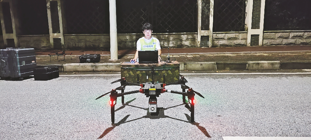 南宁市自然资源信息集团有限公司工作人员在夜间开展防汛应急航拍。(何佳玲 摄)