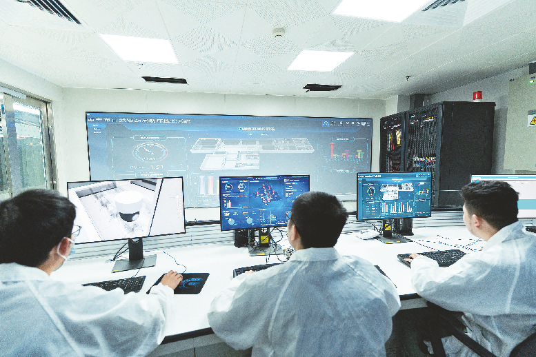 机房作为南宁市地理空间智能体的基础设施,是保障智能体稳定运行的基础。图为技术人员在监控机房运行情况。(何佳玲 摄)