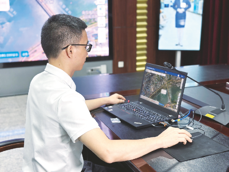 南宁市自然资源信息集团有限公司技术人员演示“清淤一张图”,清淤情况实时可视化。记者 韦静 摄