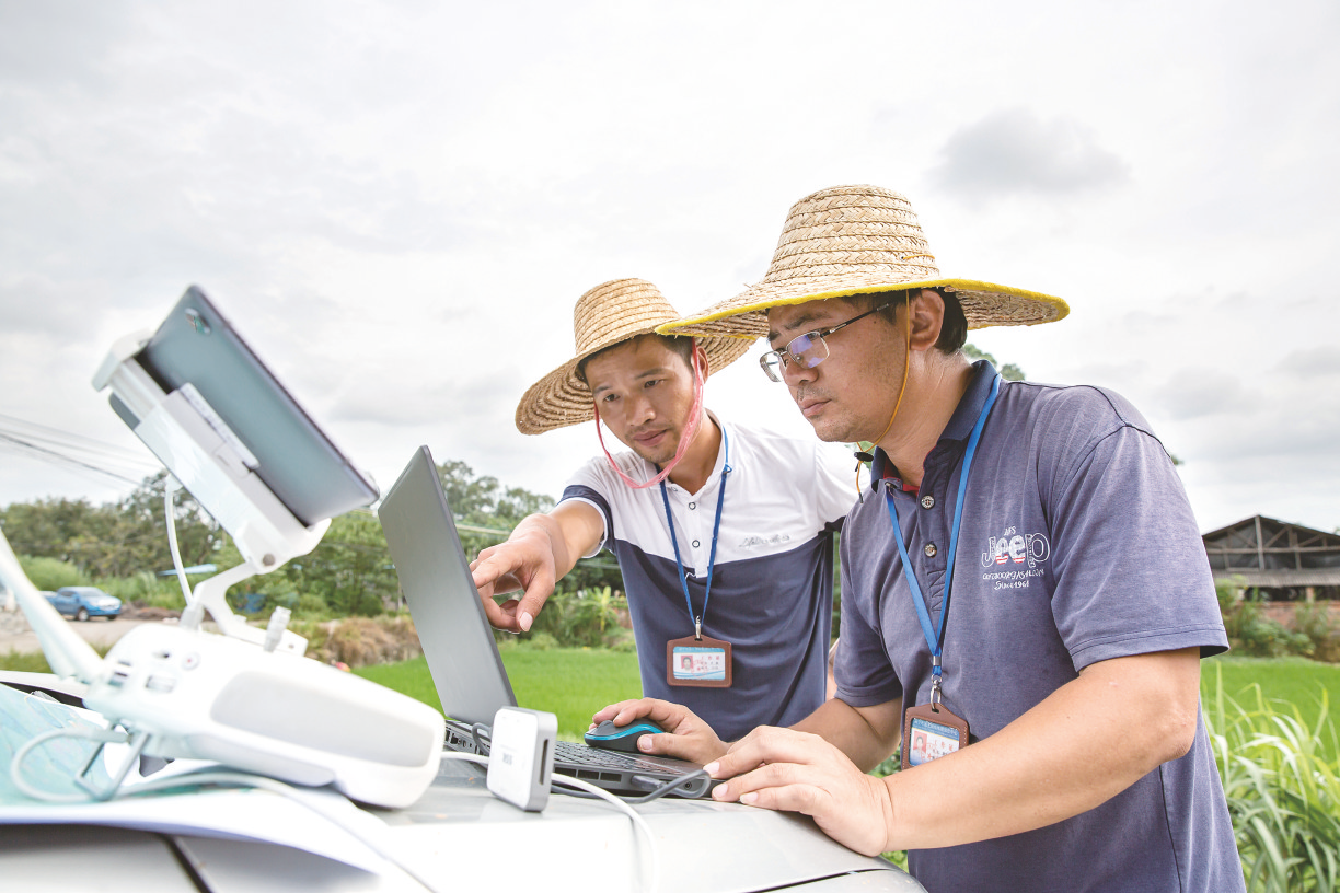 南宁市自然资源信息集团有限公司工作人员进行外业作业采集数据。(周燕芳 摄)