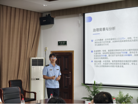 “目前,庄市是镇海区内共享单车投放数量最多的辖区,我们面对单车‘围城’问题,坚持服务优先、包容审慎、协同共治、数字赋能的原则,通过‘人防+技防+法治’打出了一套治理组合拳。”庄市中队作为本期主讲单位,通过治理前后对比案例,一张张数据图表,分享了在共享单车治理方面的工作经验和创新举措,清晰呈现了治理路径与工作成效,量化投放、校企共治、志愿联盟等具体做法引发了在场同仁的浓厚兴趣。