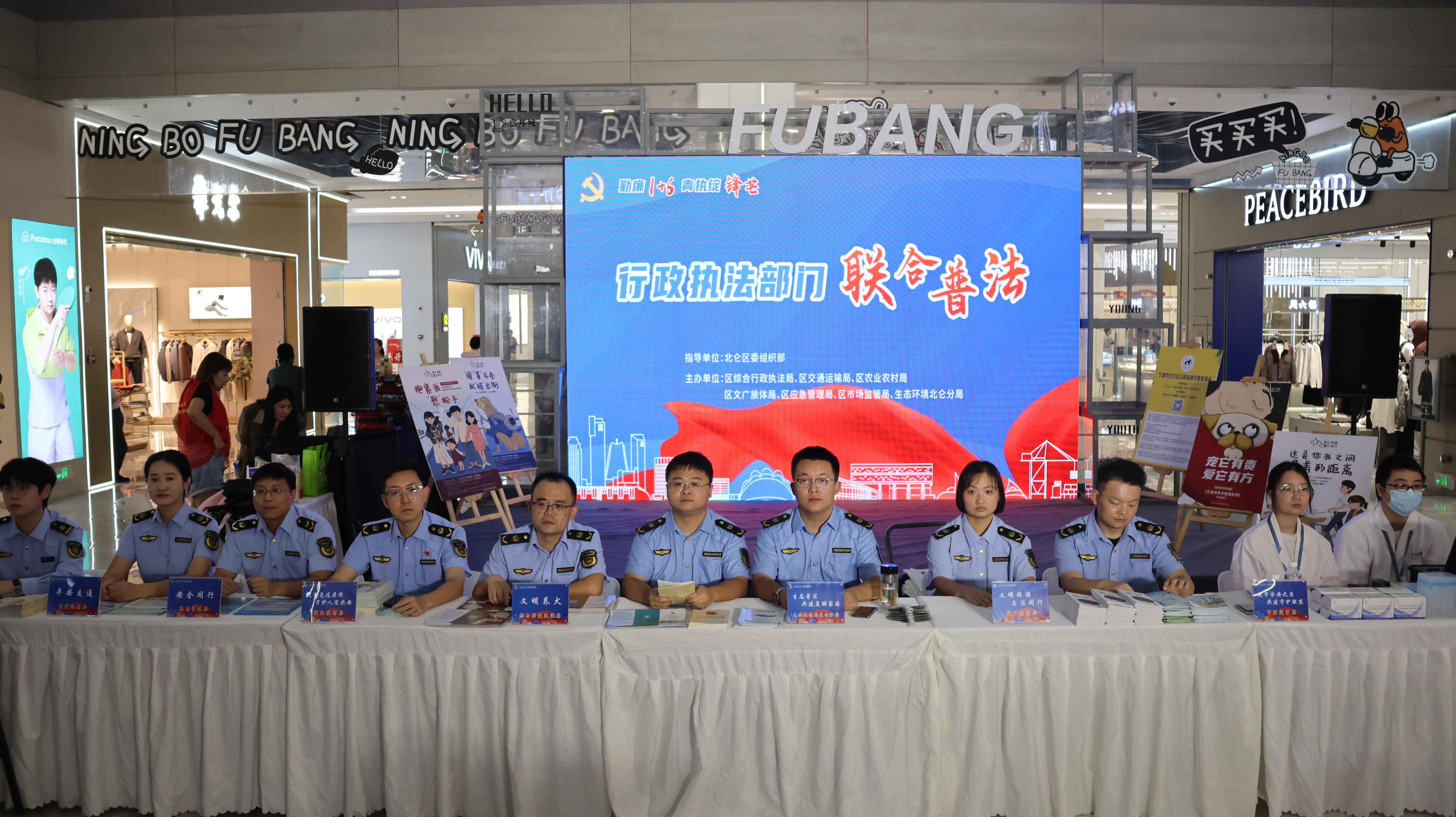 10月18日,浙江省宁波市北仑区行政执法部门联合普法活动在北仑富邦商业广场举行,北仑区综合行政执法局、区交通运输局、区农业农村局、区文广旅体局、区应急管理局、区市场监管局、生态环境北仑分局7家执法部门参加,现场吸引300余名商铺代表和市民参与。