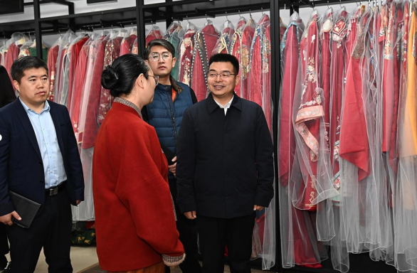 10月22日上午,河南省洛阳市老城区委书记赵书政带队实地调研新文旅产业促进群众就业增收情况,他先后走访西关汉服妆造技能培训基地、洛阳市雪绒花职业技能培训学校、沁香阁汉服婚礼馆,与企业负责人、店主、居民深入交流,详细了解辖区文旅企业经营、群众增收致富成效。赵书政强调:“就业是群众最关心、最现实、最有获得感的心头大事。我们全面发展‘人民文旅’,就是要挖掘老城文化‘富矿’,用旅游业‘金钥匙’打开群众‘就业门’,让老城百姓掌握新技能,端上‘金饭碗’,共享发展成果。要让老城百姓人人都吃上‘旅游饭’,赚上‘旅游钱’。”