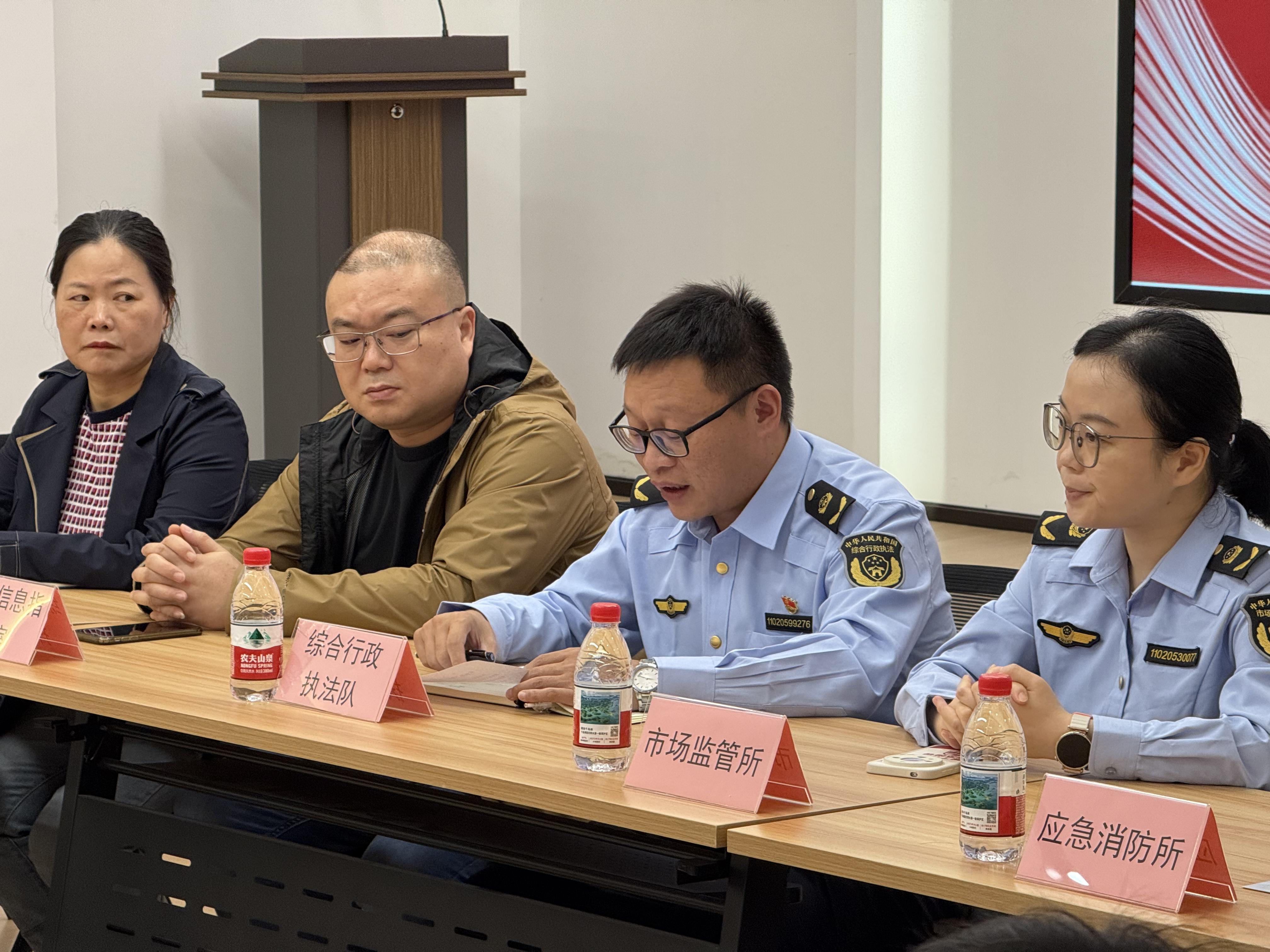 现场,各参与部门也带来了各自的“服务礼包”:市场监管部门强调了食品安全主体责任与“阳光厨房”建设;应急消防管理站开展了警示教育并公布了本地消防专线;司法所则提供了便捷的公共法律服务指引……各部门希望通过协力服务、真诚交流,共同构建起“益企惠商”的优良生态。