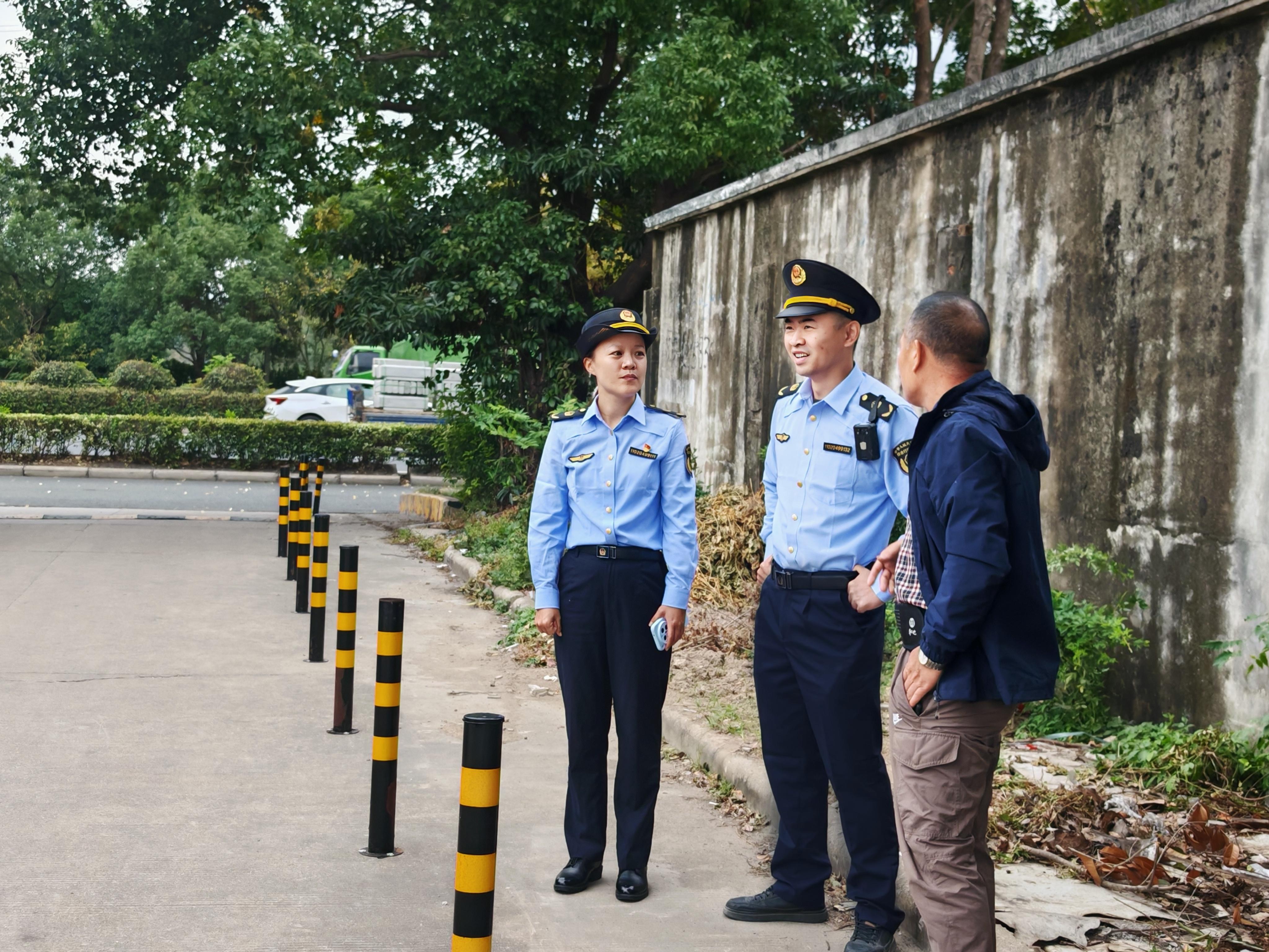 9月23日,霞浦综合行政执法中队接到企业诉求,在走访核实后,赶紧叫停了石材占道行为,发挥“益企服”桥梁纽带作用,迅速联动交警、街道城建科及属地村委会等部门,共同勘查研判,经过多次讨论及测量计算,最终确定了方案——在合理范围、科学间距、恰当位置安装隔离桩,这样既有效防止车辆违停,又确保这三家企业的工程车、货车等能正常出入。