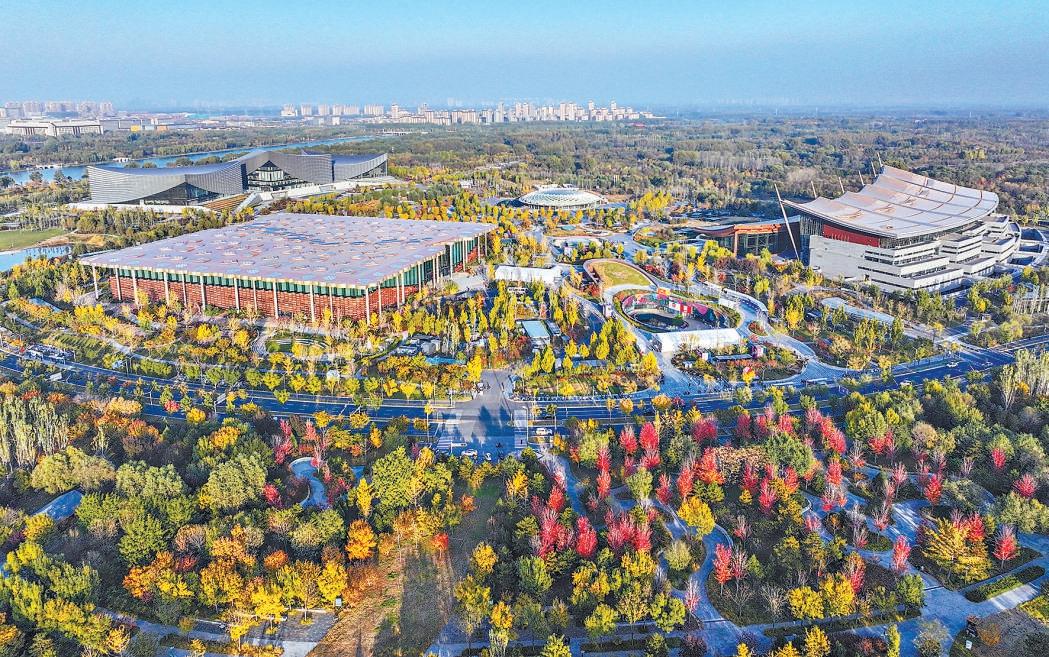 北京城市副中心三大文化建筑秋色如画(航拍照片)。 摄影 常鸣