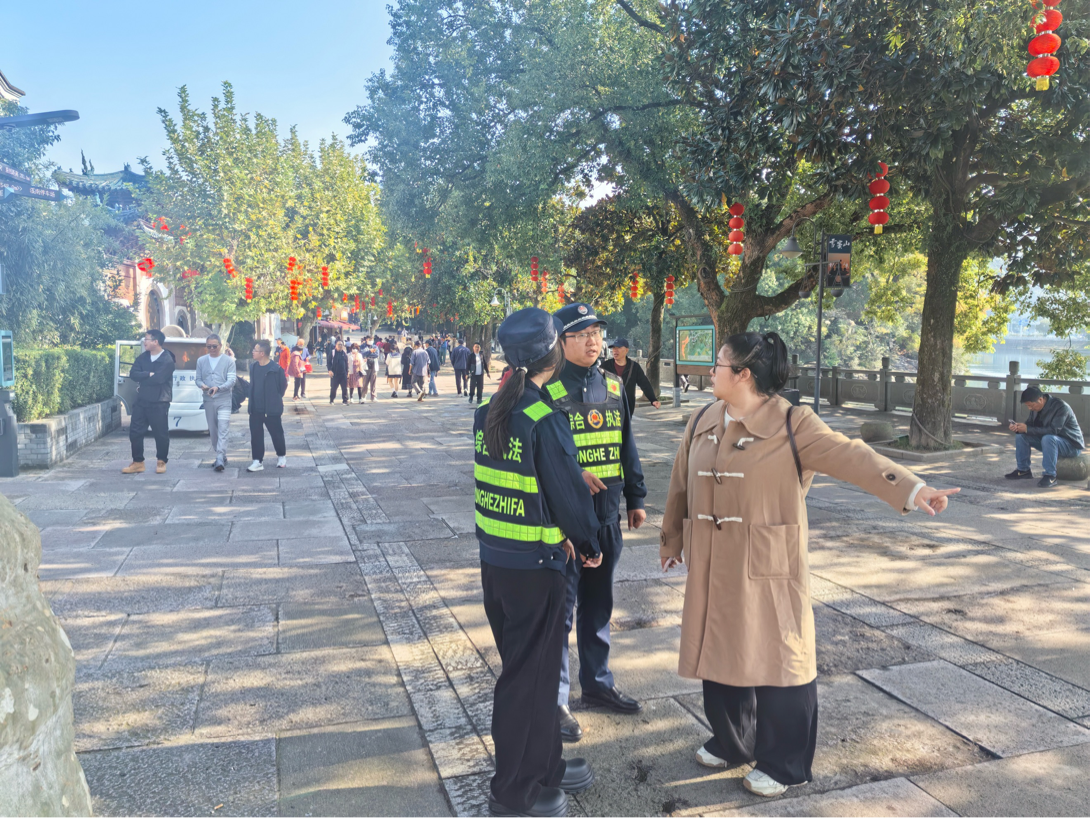针对预判到的秋假旅游高峰,执法队提前部署、周密安排,制定专项保障方案。通过增派执法力量,在景区主要入口、停车场、热门景点及商业街区等重点区域实行“定点值守+机动巡查”相结合的模式,实现管理全覆盖、响应无延迟。同时,加强与公安、交警等部门的联动协作,构建信息互通、力量互补的协同机制,为应对各类突发情况、维护游览秩序奠定了坚实基础。